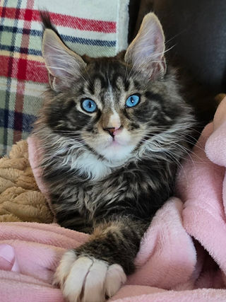 At Moose Creek Maine Coons, we pride ourselves on breeding healthy, friendly Maine Coon cats. Known for their affectionate nature and impressive size, our cats are raised in a loving environment, ensuring they are the perfect companions for their future families. All of our kings and queens are DNA and heath tested. Your kitten will come with a 1 yr genetic health guarantee. They will be ready to go home by 12 weeks of age and have their first 2 boosters and health check by my licensed vet.
